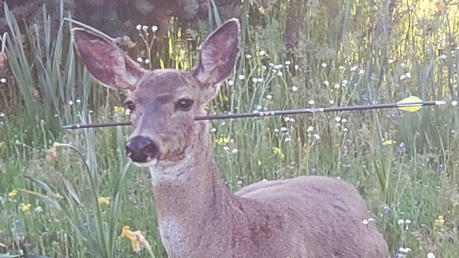 Oregon trooper finds living deer with arrows sticking through them